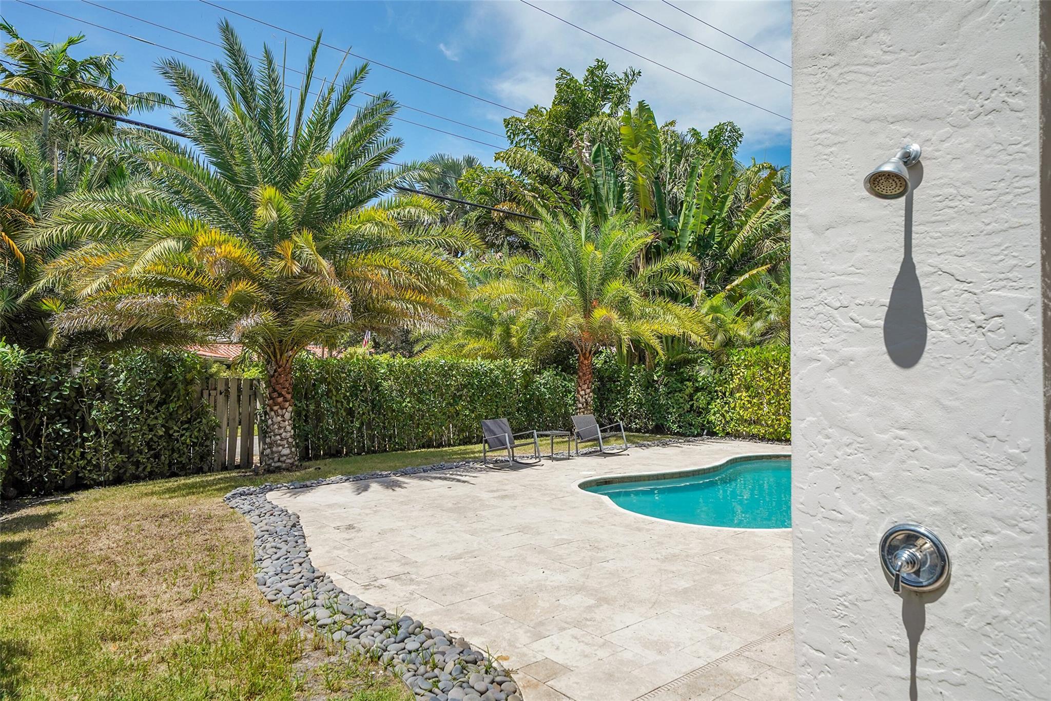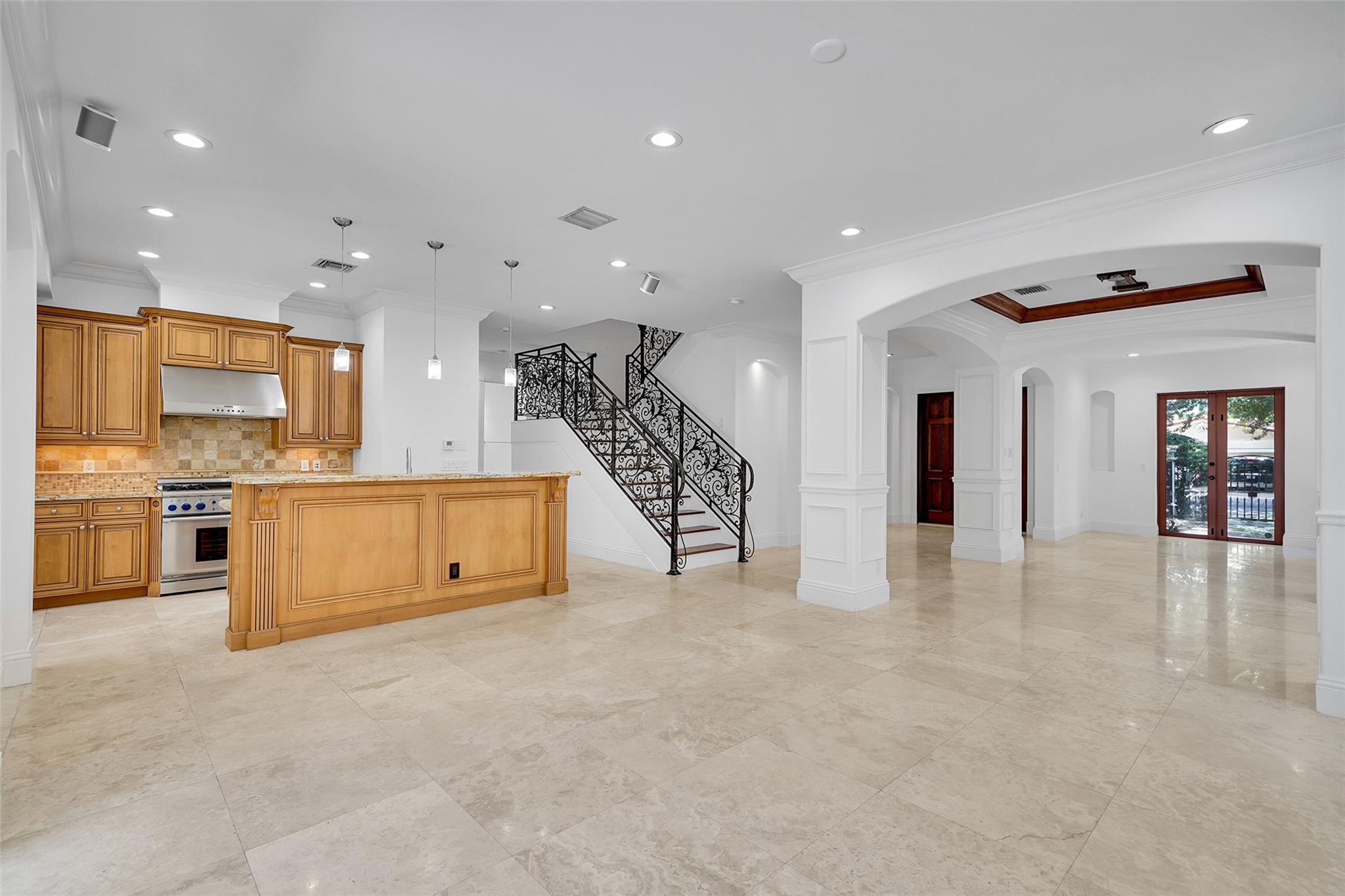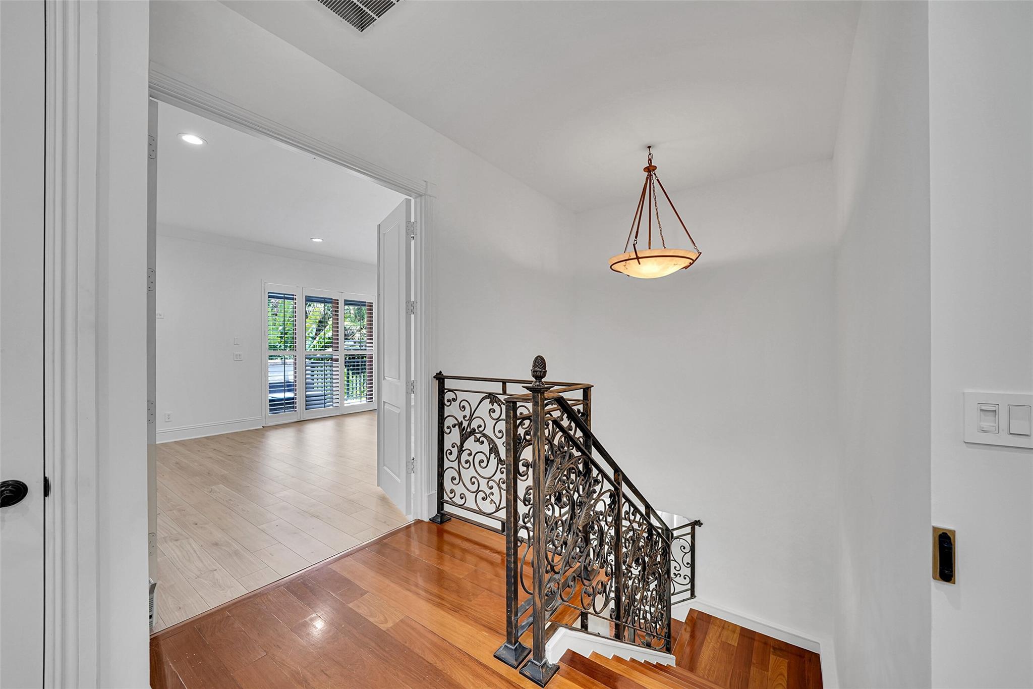 Elegant Mediterranean townhome in Coral Ridge. This 4BR/4.2BA home features a private pool, elevator, 2-car garage, and impact windows/doors. The gourmet kitchen has granite counters, Sub-Zero fridge, Thermador gas range, Bosch appliances, and breakfast area overlooking the fenced yard. Enjoy open yet formal living spaces, Saturnia marble and Brazilian cherry wood floors, custom iron staircase, and 3 balconies. The primary suite offers dual closets, spa bath, and sitting area. Great location! Bayview elementary school. Roof 2017