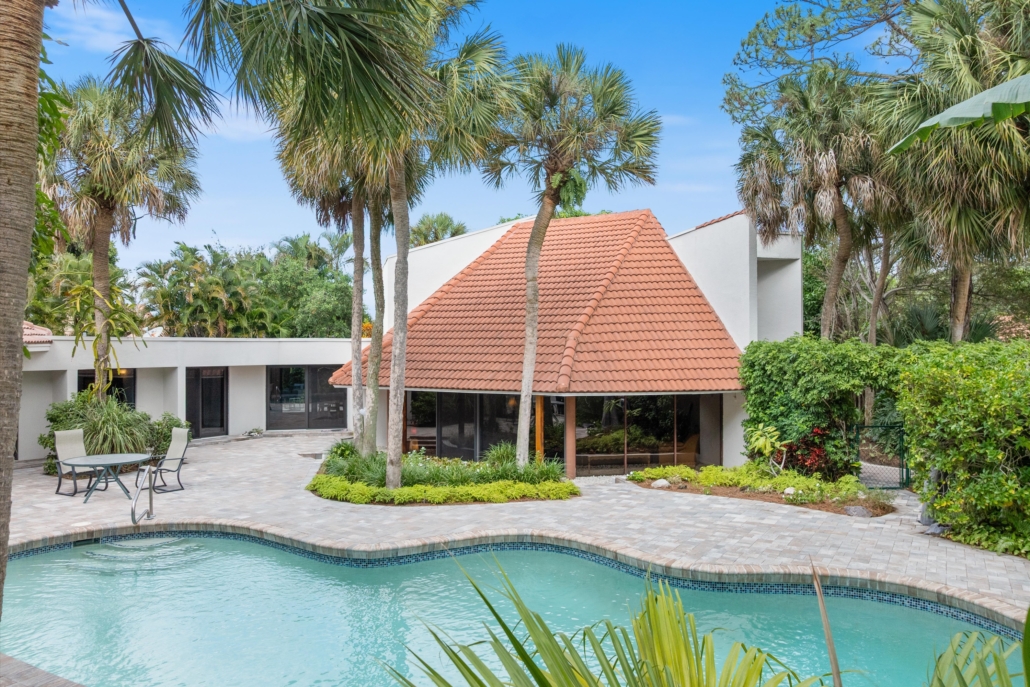 Custom designed by award-winning architect Bob Currie—and originally built as his personal residence— This remarkable home is an architectural treasure in one of Gulf Stream’s most desirable, private communities, Place Au Soleil. Offering four bedrooms, three and a half baths, and more than 3500+ square feet of thoughtfully curated living space, the home blends refined artistry with modern comfort, all surrounded by lush, native landscaping that attracts butterflies, birds, and gentle breezes from the nearby Intracoastal. The grounds have been reimagined by Florida native-plant designers to create a water-conserving habitat brimming with essential pollinators and coastal wildlife, and include a dwarf Julie mango tree.
