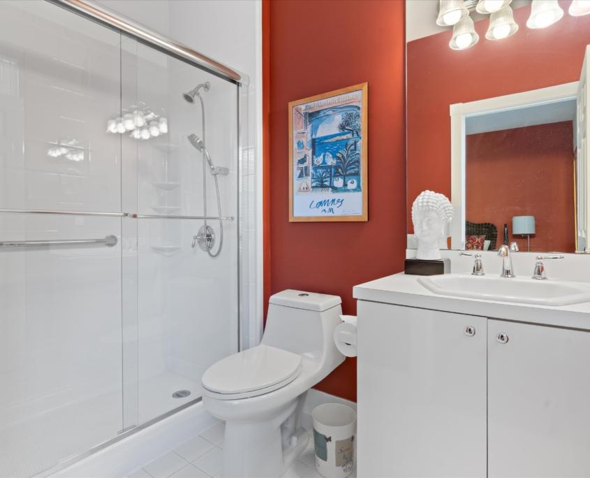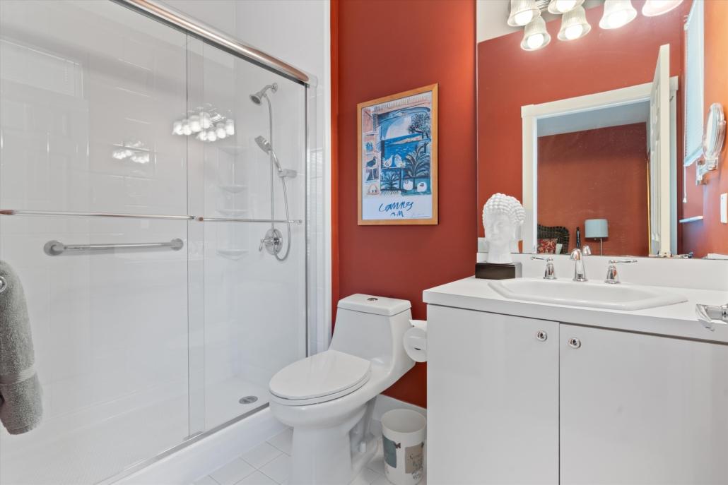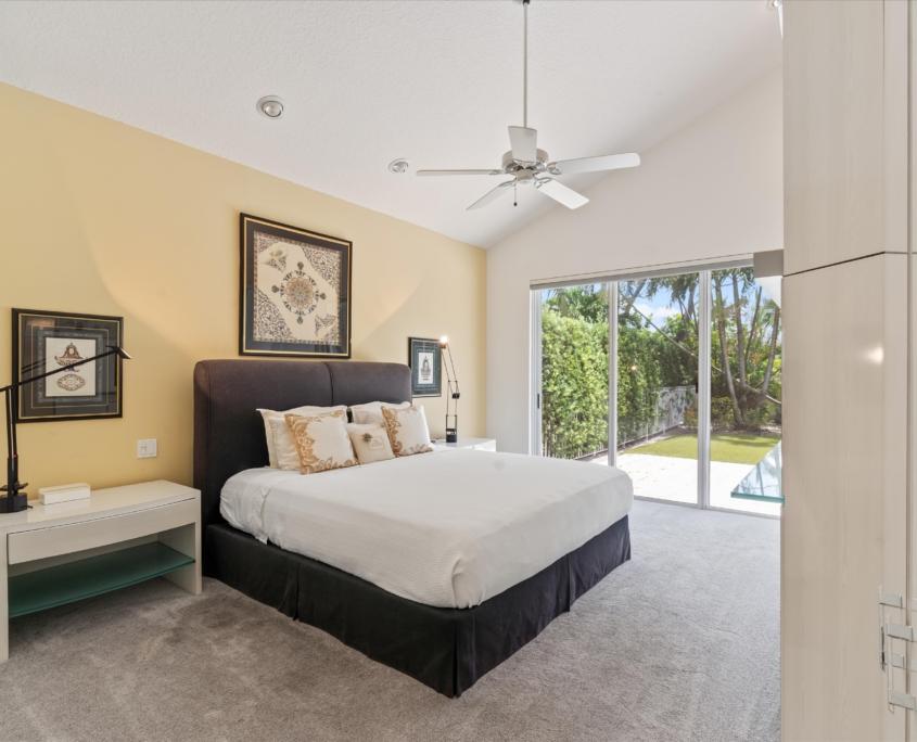 The primary suite overlooks a private backyard and garden, offering a quiet retreat, while the secondary bedrooms include a guest suite with its own full bath and a third bedroom that works perfectly as a home office or additional guest space.